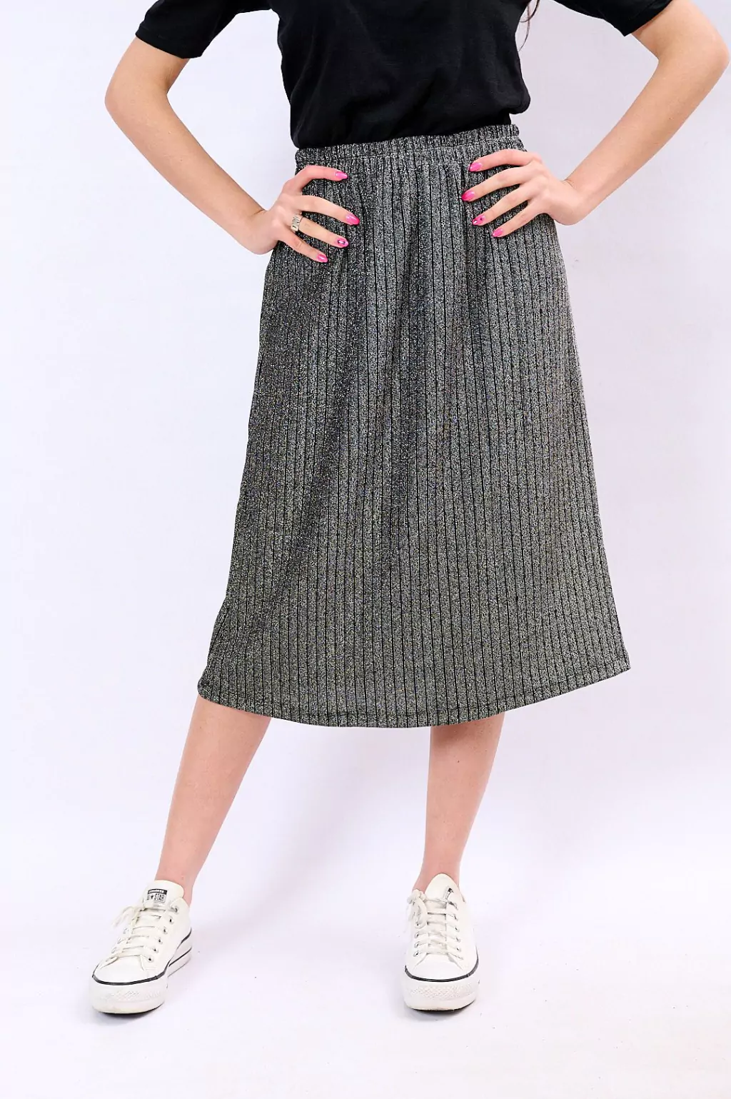 Pollera laminada con elastico en la cintura.