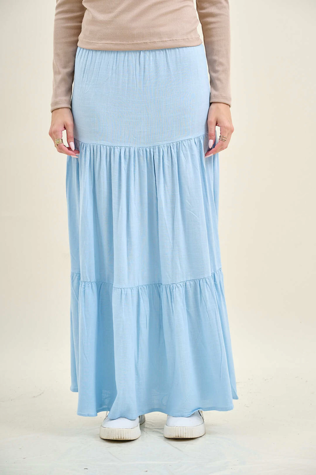 Descubre la Pollera Irene, una pieza única que combina la delicadeza del lino con un diseño de 3 volados que le aporta un toque distintivo. Con un elástico en la cintura, esta pollera se adapta a tu figura, asegurando un calce perfecto y un confort excepcional.